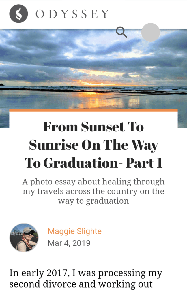 Then there is this blog. This is the blog where I talk to YOU, my readers. This is where I share what I am doing as a writer and those things that are happening in my life. Today I am sharing with you, my readers, that my writing is now appearing on a new platform: Odyssey!