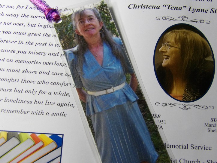 I miss you, Tena. I love you. The interaction that we had from day to day, the support you gave to this writer who simply wants people to read her words, was invaluable and sorely missed. I am glad you are no longer in pain. I regret not spending more time with you here. I hope to do better with our family that remains.