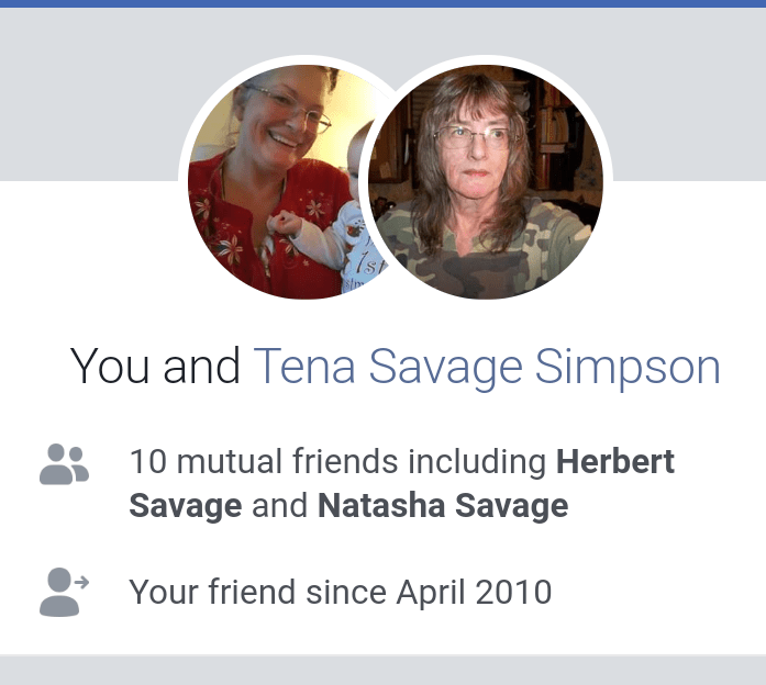 Christena “Tena” Lynn Simpson nee Savage, was my second cousin on my mother’s side. We were connected on Facebook from 2010. I loved the fact that she carried our great-grandmother’s name and the same way she spelled the shortened version. It was a unique part of our Savage family.