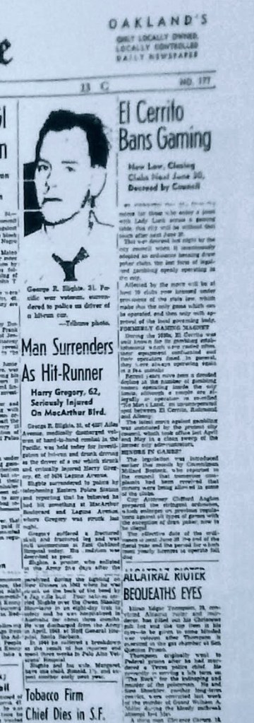 The day I saw his face, I also found another article in the Oakland Tribune about George Ronald Slighte. This piece confirmed what I knew to be true as well. It ran twenty-one years to the day from his grandson’s, my brother Jason’s birth, on 6 June 1949. It was printed on page 7:
