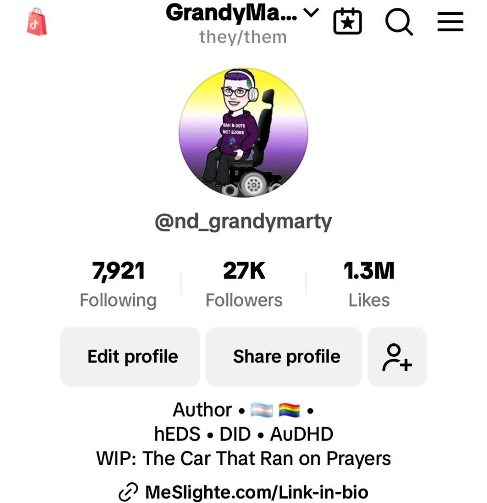 I started out as NeurodivergentGranny and eventually evolved into GrandyMarty before TikTok shuttered tonight.